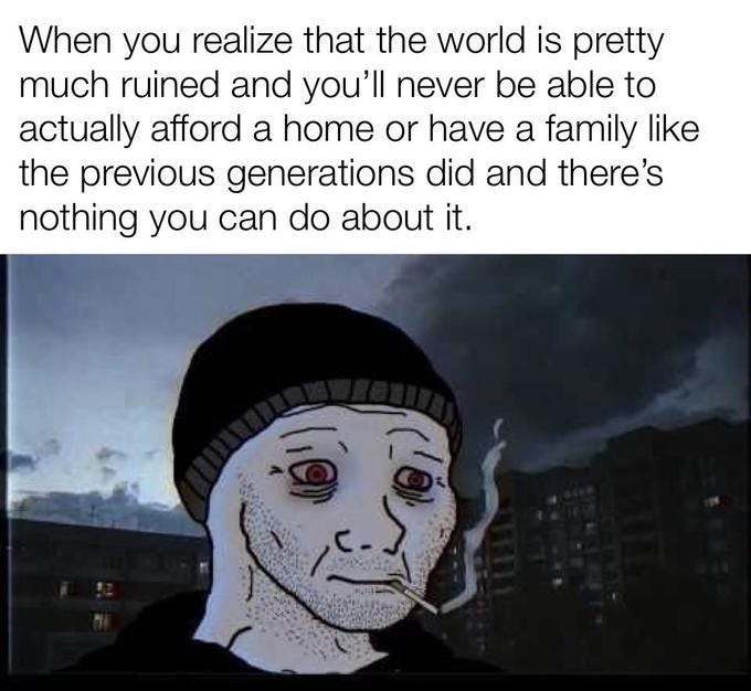 At other points in history, rampant corporate greed might have provoked a neo-socialist revolution, collective action, or other resistance. But in a world where where people are physically isolated, socially disconnected and algorithmically polarised, we end up with existential malaise.